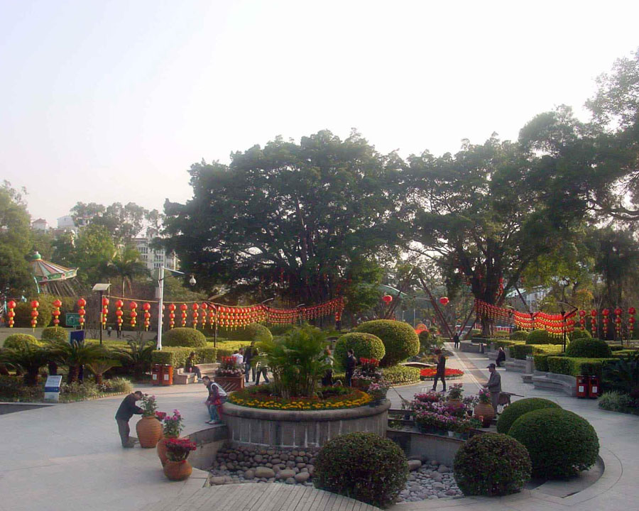 公园以依山就势保护环境,局部改造,适度置景为原则,规划建设南山"绿波流泉"景区,西山"花谷飘香"景区,中心"牛岭泉月"景区和北山"金顶松风"景区。现在已初步建成、2001年5月1日对外开放的是一期工程"南山绿波流泉景区",总投资6500万元,以及中山景区种植的日本议员、自民党副干事长赠送的、象征中日友好的樱花树200余株,形成的樱花园。北坡花果苑依托原有的橄榄、龙眼林,用近200亩的用地,种植桃树、梨树、荔枝、杨梅、枇杷等果树和石榴、紫薇、红梅、腊梅、玉兰等观赏花木3000株。区内的自然式疏林草地展示以花卉丛带为主题的春季花卉。